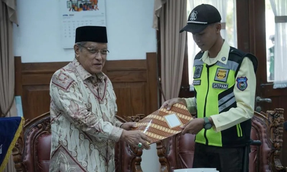 CARAPANDANG - Komisaris Utama PT Kereta Api Indonesia (Persero) Said Aqil Siroj memberikan apresiasi kepada petugas keamanan Stasiun Semarang Tawang Bank Jateng atas nama Achmad Hidayatul Ikhsan.