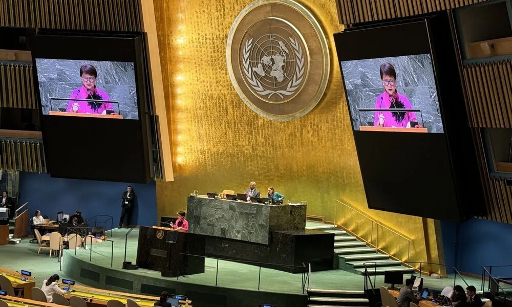 CARAPANDANG - Menteri Luar Negeri RI Retno Marsudi merespons pidato Perdana Menteri Israel Benjamin Netanyahu saat Sesi Debat Umum Sidang ke-79 Majelis Umum PBB.