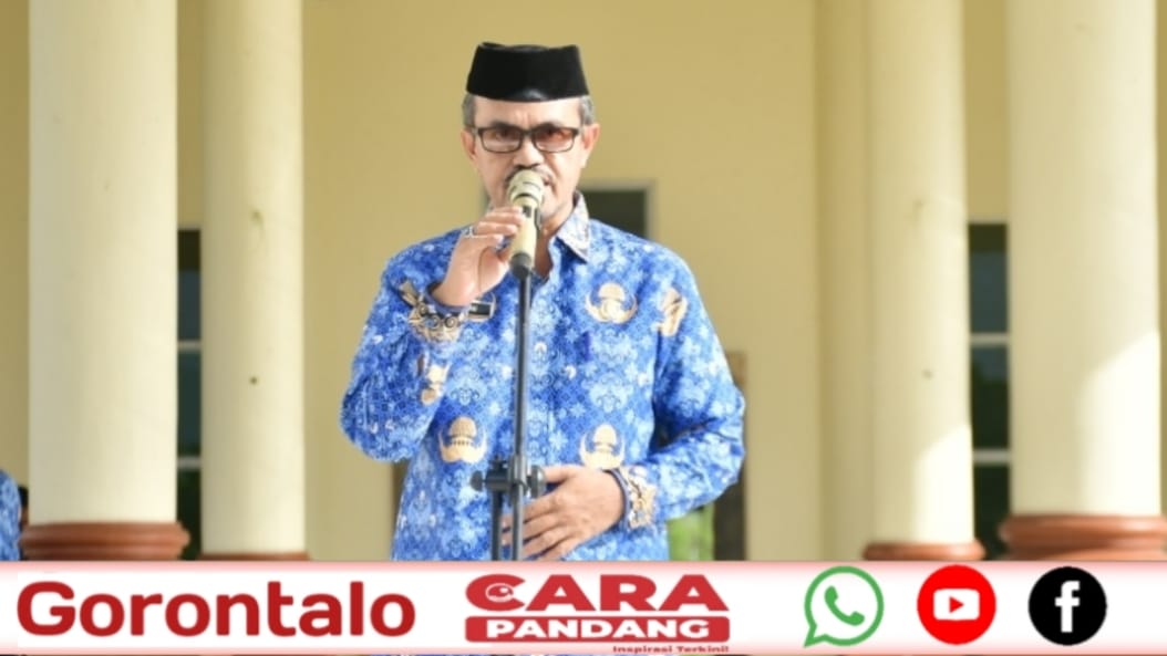 Sekretaris Daerah (Sekda), Iskandar Datau pimpin Apel Korpri di lingkungan Pemda Pohuwato yang berlangsung di halaman kantor sementara bupati Pohuwato, dipimpin , Kamis, (17/10/2024).