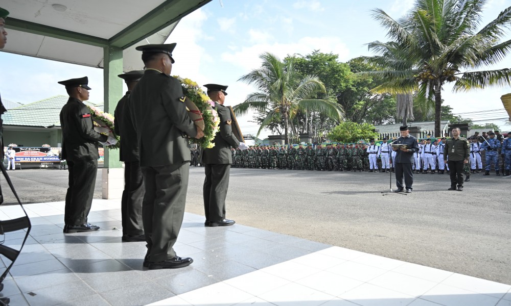 SUMBAR, CARAPANDANG.COM - Gubernur Sumatera Barat (Sumbar), Mahyeldi Ansharullah, bertindak sebagai inspektur upacara (irup) pada Upacara Persemayaman dan Pemberangkatan jenazah Kopral II (Kopda) Hendrianto di Markas Korem 032/Wirabraja, Rabu (27/12/2023). Gubernur mendoakan almarhum gugur sebagai syahid, dan keluarga yang ditinggalkan senantiasa diberi ketabahaan dan kesabaran.