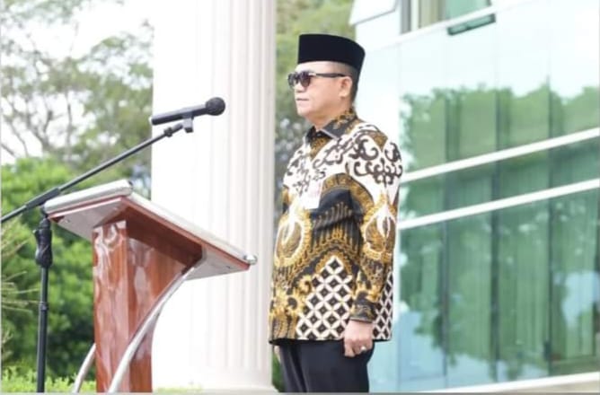 BUKITTINGI, CARAPANDANG - Pjs Walikota Bukittinggi, H. Hani Syopiar Rustam, pimpin apel gabungan seluruh jajaran ASN lingkup Pemerintah Kota Bukittinggi dan menandatangani pakta integritas sebagai wujud komitmen dalam pemilihan umum Kepala Daerah tahun 2024. Kegiatan ini berlangsung di Halaman Balai kota Bukittinggi. Kamis, (26/09/2024).