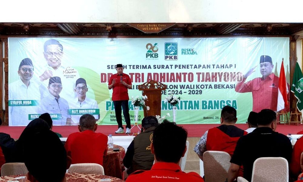 BEKASI, CARAPANDANG - PKB resmi menyatakan dukungan untuk Tri Adhianto pada Pilkada Kota Bekasi 2024 mendatang. Hal tersebut dikuatkan dengan turunya surat penetapan tahap I yang dikeluarkan DPP PKB.