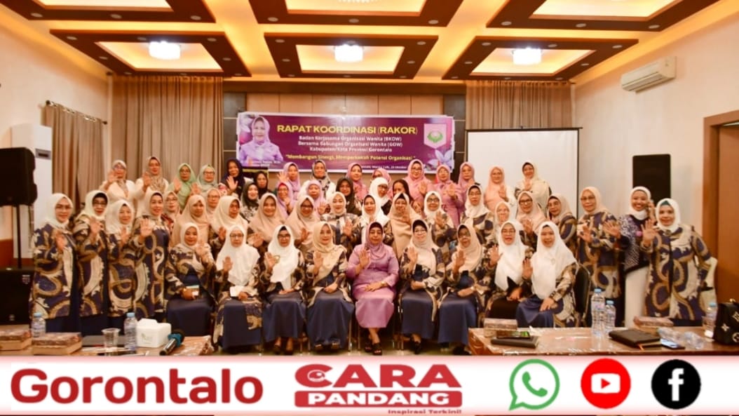 POHUWATO, CARAPANDANG - Rapat koordinasi (Rakor) Badan Kerjasama Organisasi Wanita (BKOW) bersama Gabungan Organisasi Wanita (GOW) Kabupaten/Kota Provinsi Gorontalo yang berlangsung di Manna Café, Kota Gorontalo turut dihadiri pelaksana tugas (Plt) Bupati Pohuwato, Suharsi Igirisa, yang juga selaku Ketua GOW Pohuwato, Rabu, (23/10/2024).