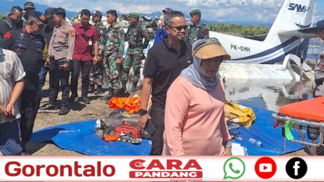 POHUWATO, CARAPANDANG - Plt Bupati Pohuwato, Suharsi Igirisa, menyampaikan belasungkawa yang mendalam atas kecelakaan pesawat perintis milik PT SAM Air dengan nomor registrasi PK-SMH (DHC6) yang terjadi di Bandara Panua, Pohuwato, Minggu (20/10/2024).