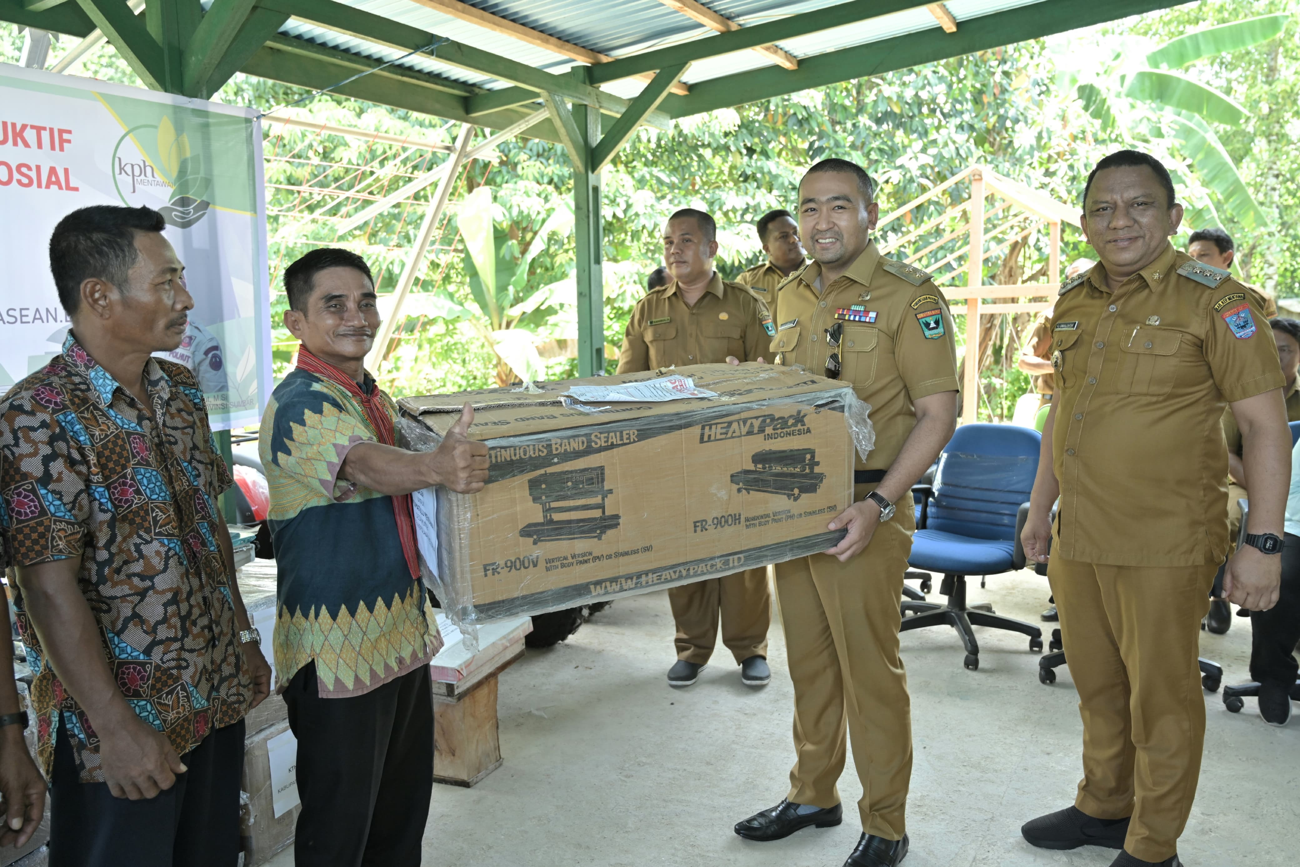 SUMBAR, CARAPANDANG - Pemerintah Provinsi Sumatera Barat (Pemprov Sumbar) menyalurkan bantuan Alat Ekonomi Produktif bagi Kelompok Perhutanan Sosial di Kabupaten Mentawai sebagai upaya mendorong perekonomian masyarakat. Bantuan diserahkan langsung oleh Plt Gubernur Sumbar, Audy Joinaldy di Kantor UPTD Kesatuan Pengelolaan Hutan Produksi (KPHP) Mentawai, Senin (14/10/2024).