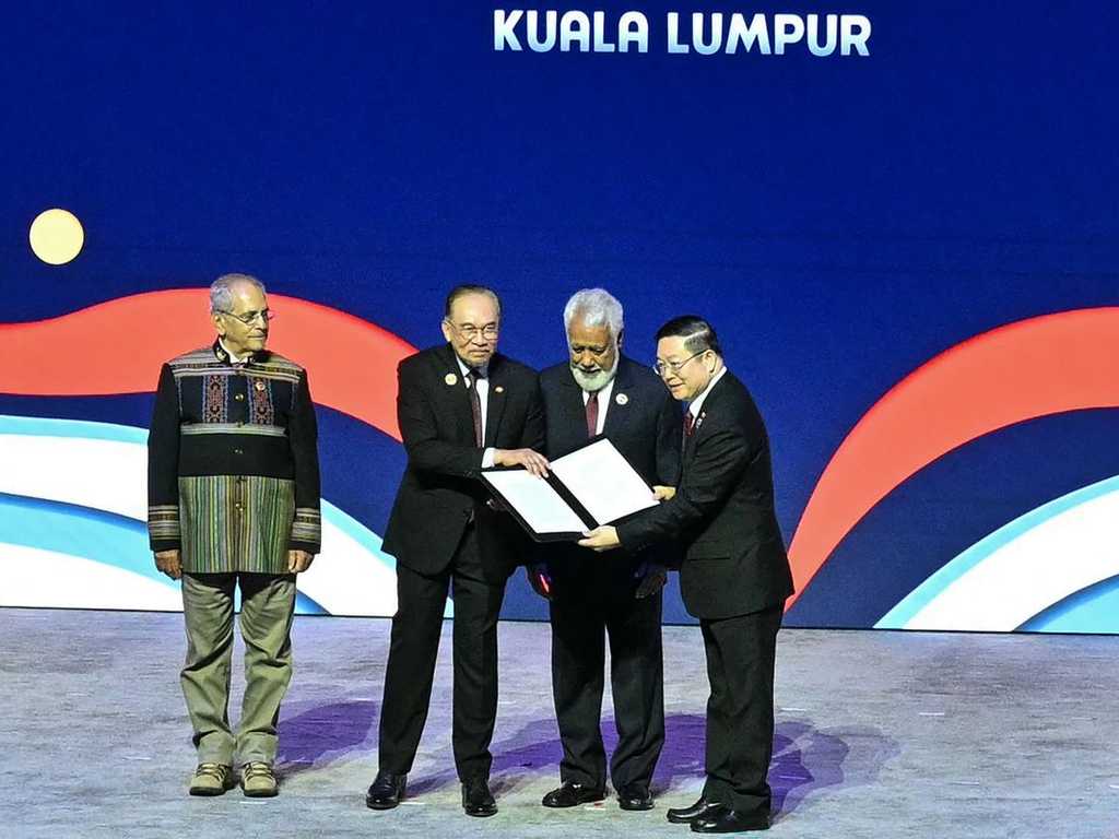 Pada Minggu, Timor Leste resmi menjadi anggota ke-11 ASEAN. Deklarasi tersebut ditandatangani dalam sebuah pertemuan puncak di Malaysia, di hadapan seluruh pemimpin ASEAN dan Perdana Menteri Timor Leste, Kay Rala Xanana Gusmao.