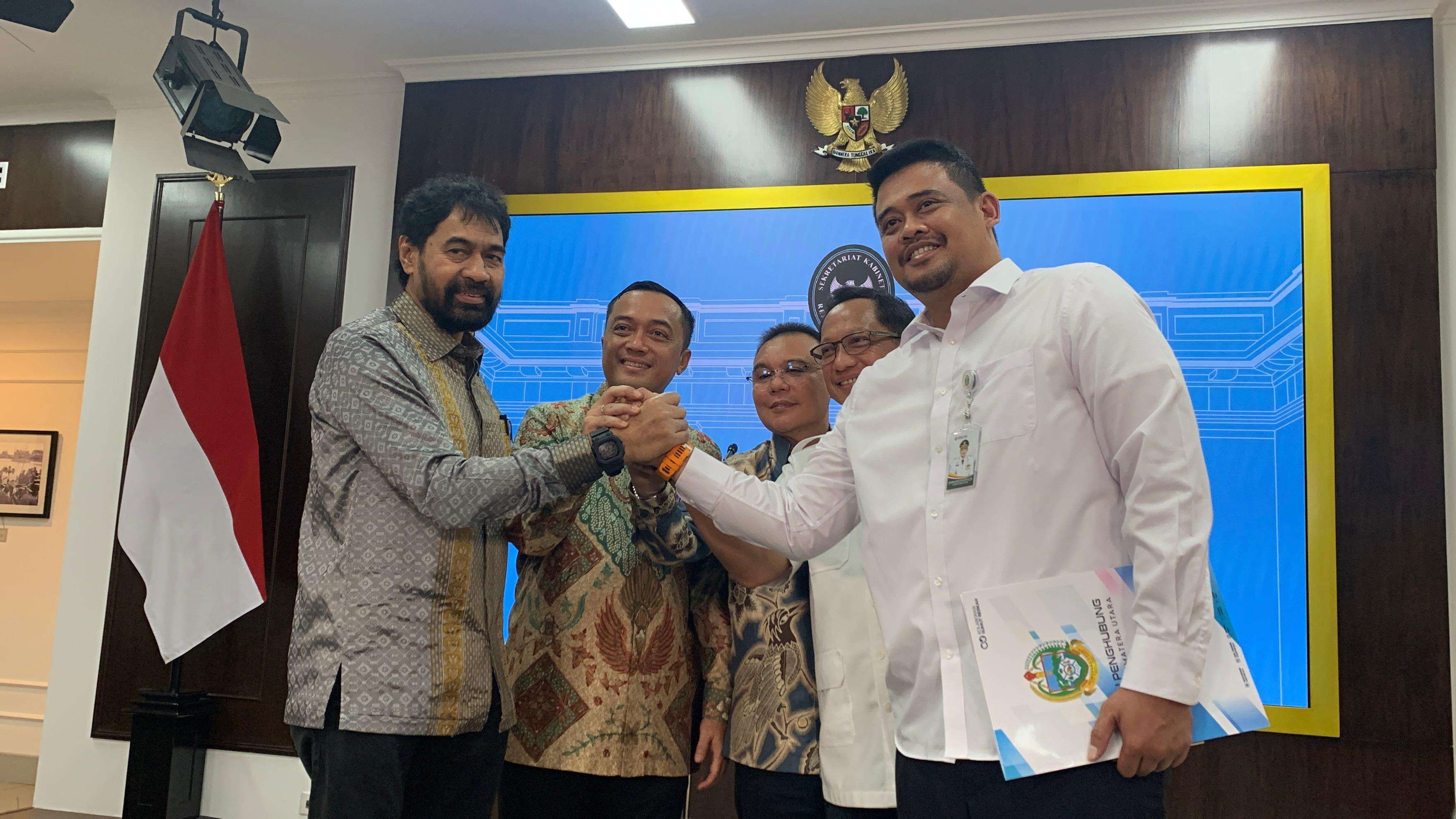 Usai memberi keterangan tentang itu, Gubernur Aceh Muzakir Manaf (Mualem) dan Gubernur Sumatra Utara Bobby Nasution berjabat tangan. Momen ini menjadi istimewa karena disaksikan Wakil Ketua DPR, Sufmi Dasco Ahmad.