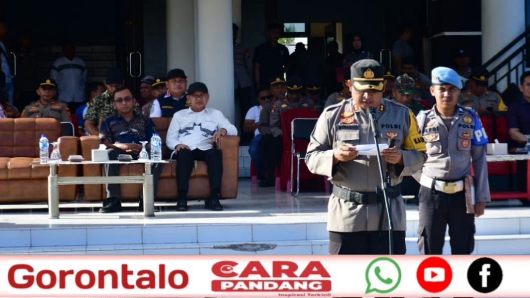 POHUWATO, CARAPANDANG - Simulasi Sistem Pengamanan Kota (Sispamkota) dalam rangka persiapan pengamanan pemilihan kepala daerah (Pilkada) serentak 2024 yang berlangsung di Mapolres Pohuwato turut dihadiri Bupati Pohuwato, Saipul A. Mbuinga, Dandim 1313 Pohuwato, Letkol Inf Aribowo Dwi Hartanto, perwakilan Kejari Pohuwato, Kepala Kesbangpol, Yunus Mohamad, dan Plh. Kadis Perhubungan, Mohammad Huntoyungo, Jum’at, (06/09/2024).