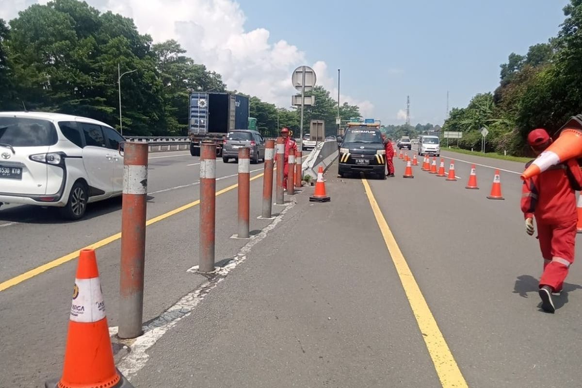 CARAPANDANG - Jasa Marga mendukung diskresi Kepolisian memberlakukan rekayasa lalu lintas lawan arah atau contraflow mulai dari KM 44+400 hingga KM 46+400 Ruas Tol Jagorawi arah Puncak.