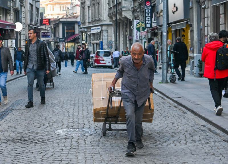 CARAPANDANG.COM, ISTANBUL -- Seorang pria yang bekerja sebagai porter dengan gesit menarik gerobak tangan berisi paket barang di distrik komersial Eminonu, Istanbul, Turkiye, pada 25 November 2025. Di kawasan tua Istanbul, kerap kali terlihat pemandangan yang familiar, yakni para pria berjalan melintasi jalan-jalan sempit sambil membawa beban berat di punggung mereka atau mendorongnya dengan gerobak tangan. Dalam bahasa Turkiye, mereka dikenal sebagai "hamal," para porter tradisional ini mewakili profesi yang telah ada sejak era Ottoman dan masih bertahan hingga saat ini.