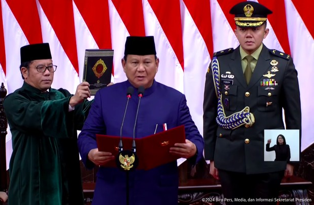 CARAPANDANG.COM - Presiden Prabowo Subianto menyampaikan pidato perdana selepas resmi dilantik sebagai presiden terpilih periode 2024-2029 di Ruang Rapat Paripurna I, Gedung MPR/DPR/DPD, Jakarta, Minggu (20/10/2024). Dalam pidatonya, Prabowo menyinggung soal pemberantasan korupsi.