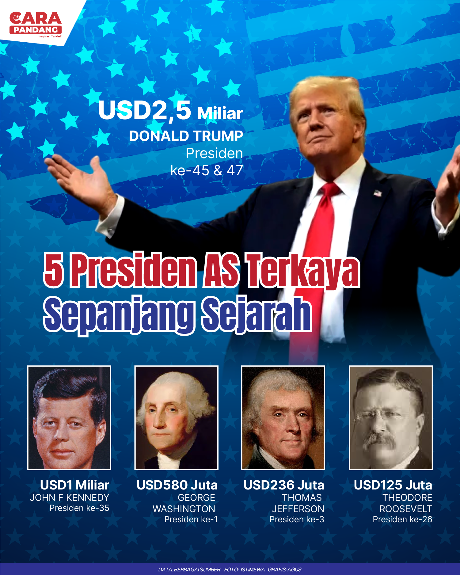 CARAPANDANG - Amerika Serikat telah dikepalai oleh berbagai presiden dengan latar belakang ekonomi yang beragam. Beberapa dari mereka menerima warisan kekayaan yang besar, sedangkan yang lainnya mengakumulasi kekayaan melalui kesuksesan mereka sendiri atau keluarga.