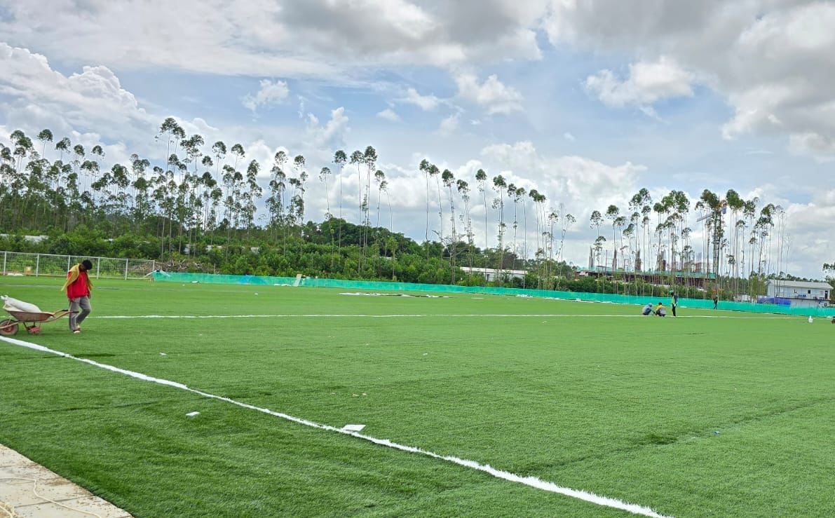rumput sintetis, mes pemain dan pelatih, serta fasilitas olahraga lainnya.