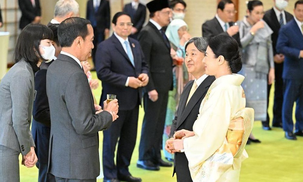 CARAPANDANG - Presiden Joko Widodo bersama para pemimpin negara ASEAN menghadiri jamuan minum teh yang digelar oleh Kaisar Jepang Naruhito dan Permaisuri Masako di Istana Kekaisaran, Tokyo, Jepang, Senin (18/12).