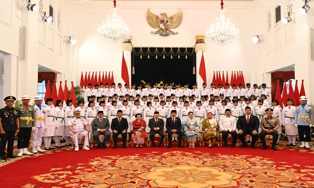 Kemudian, Presiden Joko Widodo melanjutkan dengan penyampaian pernyataan pengukuhan Paskibraka Nasional tahun 2023.