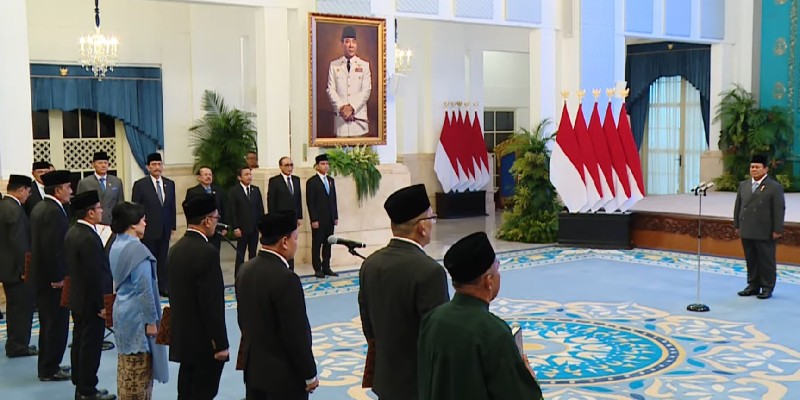 Presiden Prabowo dalam proses pelantikan tersebut didampingi oleh Wakil Presiden Gibran Rakabuming Raka.