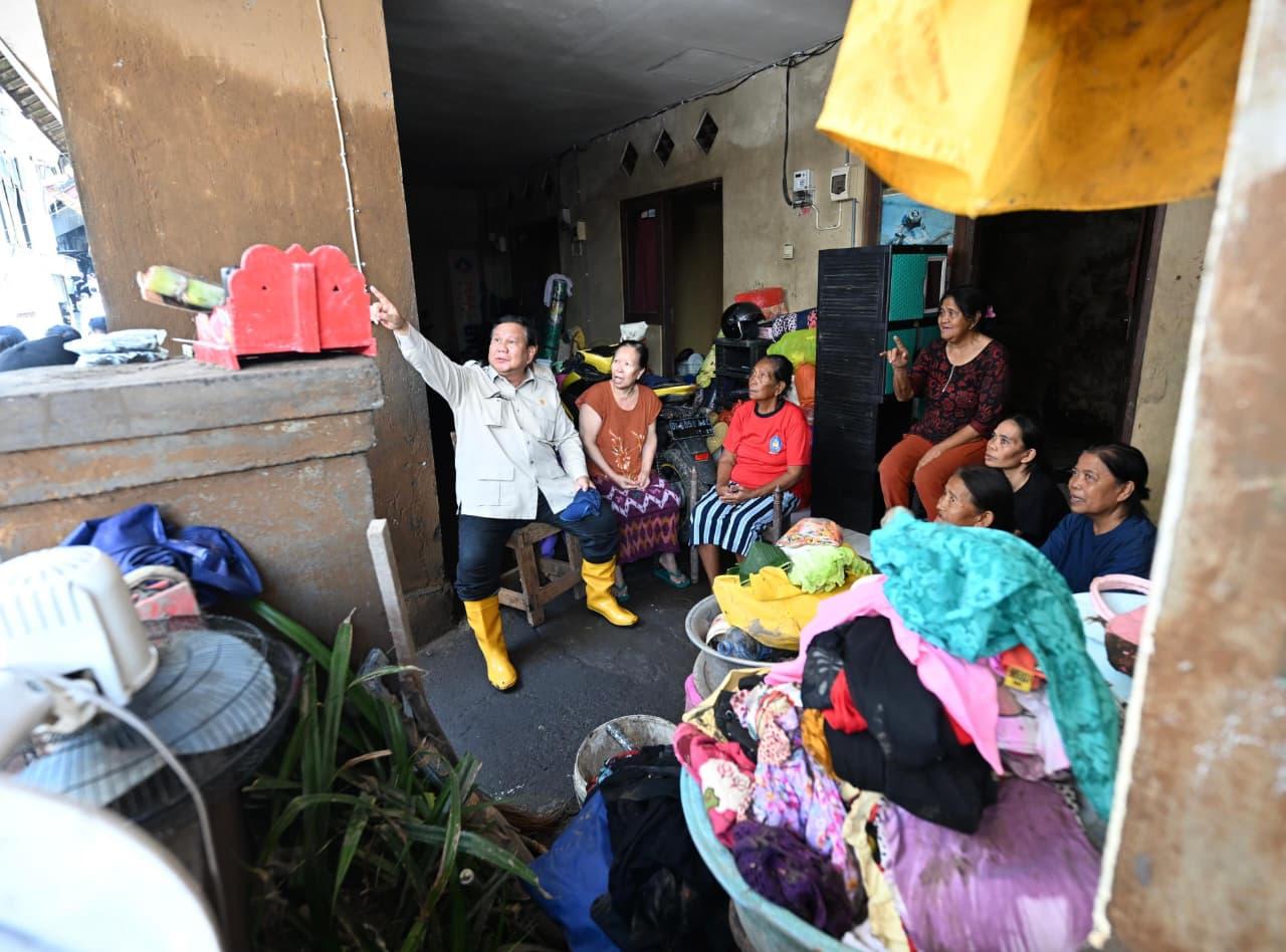 Dengan menyusuri gang kecil yang masih penuh dengan lumpur, Presiden banyak berhenti untuk menyapa sekaligus berbincang-bincang dengan para warga terdampak terkait kondisi keluarga dan rumah saat banjir terjadi. Kepada Presiden, warga pun menceritakan kondisi yang terjadi saat air sungai mulai naik hingga masuk ke rumah-rumah warga.