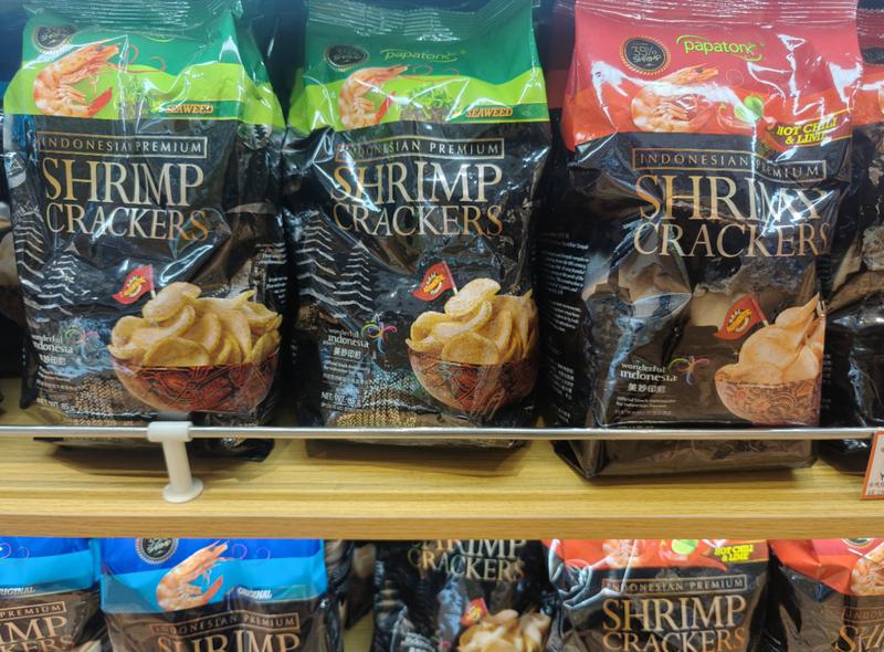 Foto yang diabadikan pada 2 Februari 2025 ini menunjukkan produk kerupuk udang yang diimpor dari Indonesia di sebuah toko di Taiyuan, ibu kota Provinsi Shanxi, China utara. (Xinhua/Wang Hao).