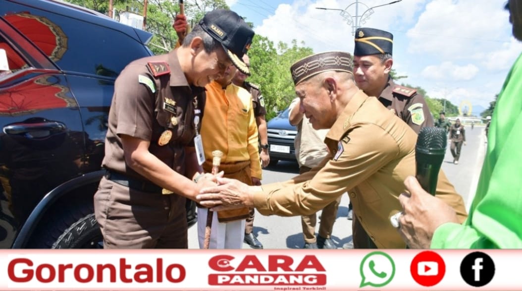 POHUWATO, CARAPANDANG - Kunjungan kerja Kepala Kejaksaan Tinggi (Kajati) Gorontalo, Riyono, S.H., M.Hum di Kabupaten Pohuwato disambut dengan prosesi adat Gorontalo Mopotilolo, Selasa (27/01/2026).