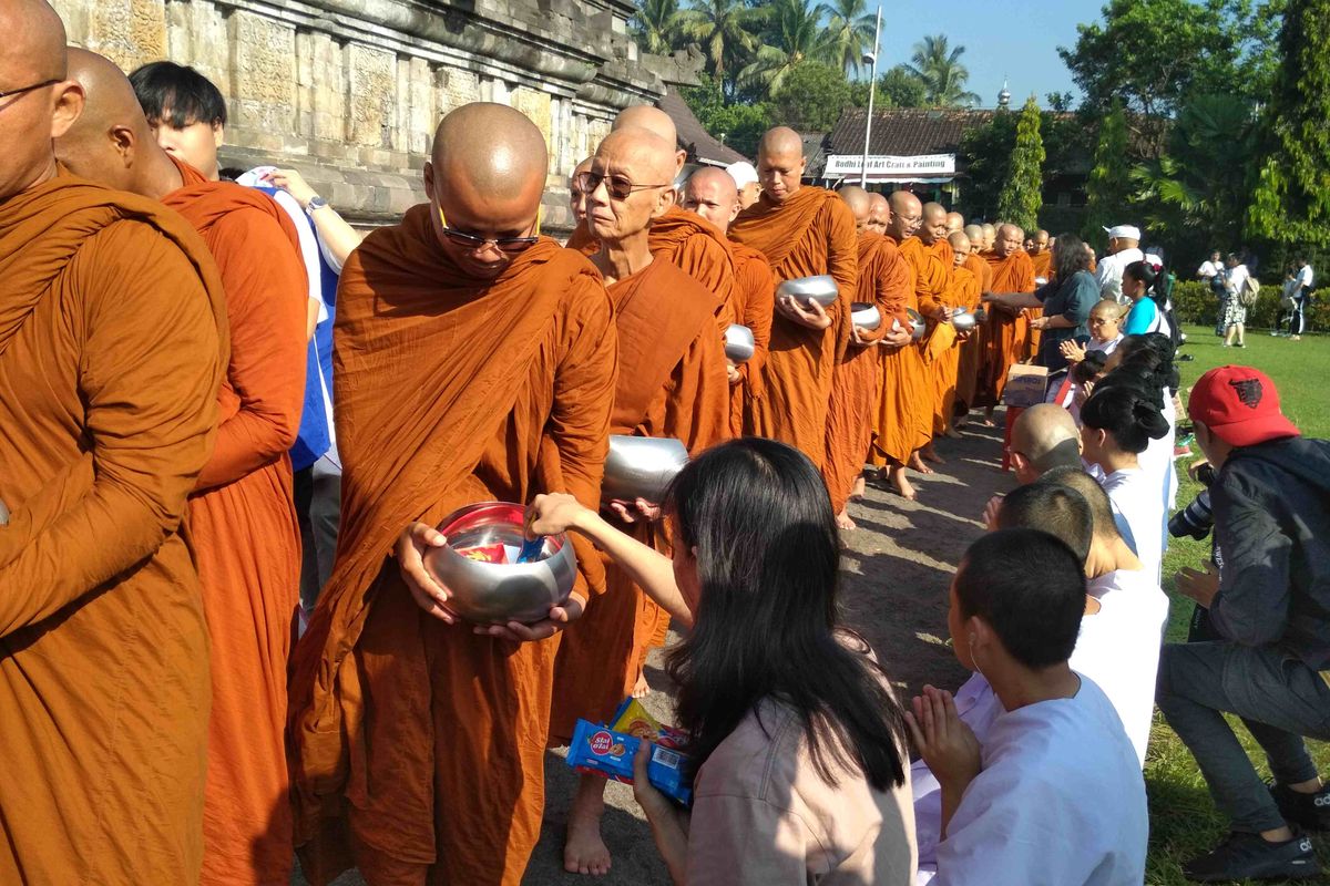 "Makna pindapata sendiri, umat berdana karena kami percaya dengan tindakan perdana itu merupakan karma baik akan mencapai kebahagiaan," katanya.
