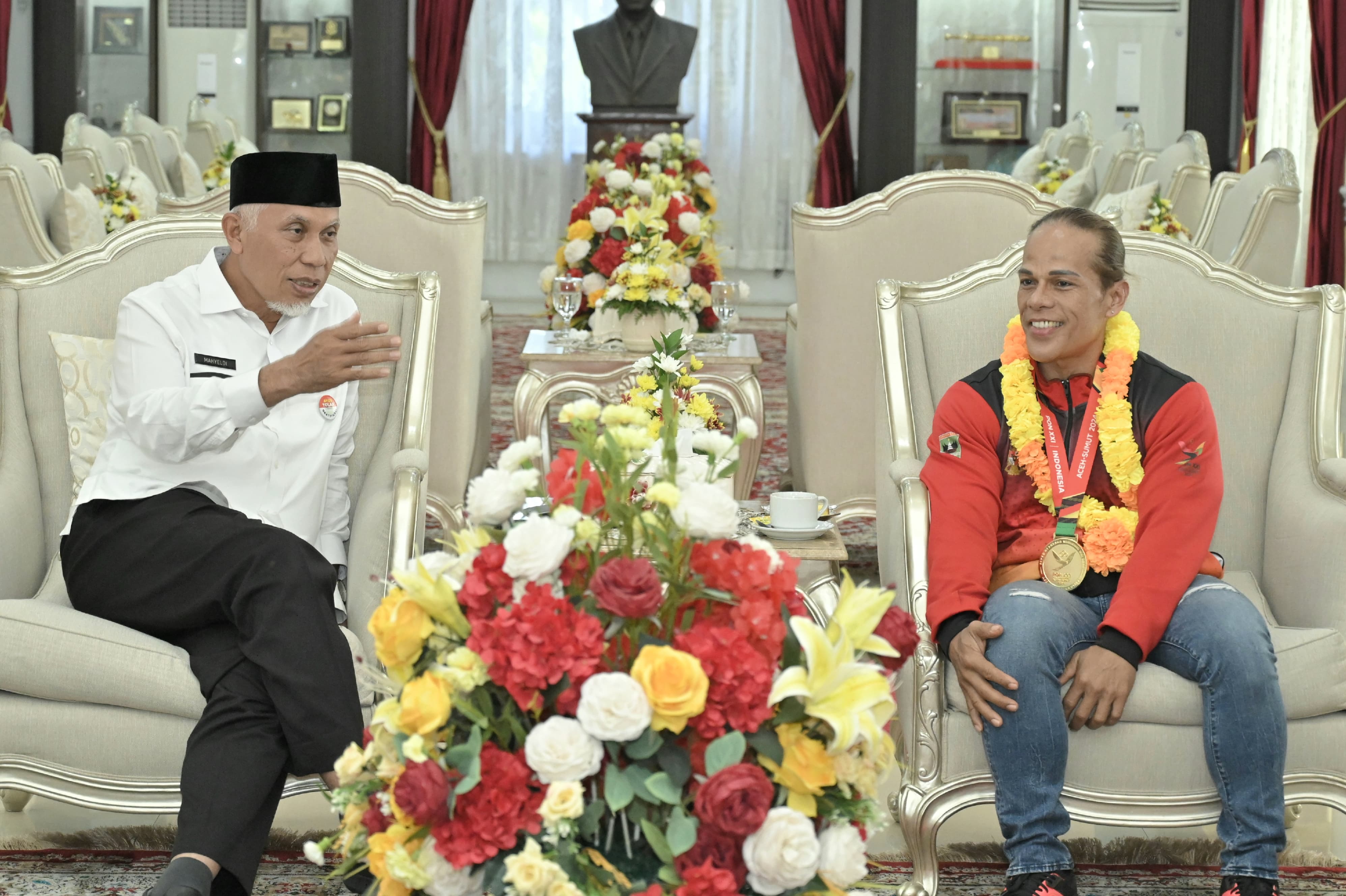 "Atas nama Pemerintah Provinsi (Pemprov) dan seluruh masyarakat Sumbar, kita mengucapkan terima kasih dan apresiasi yang setinggi-tingginya kepada Iwan Samurai dan Andika. Berkat latihan, doa, dan kerja keras, keduanya berhasil mengharumkan nama Sumbar. Bahkan Iwan Samurai sudah keempat kalinya secara berturut-turut meraih emas PON untuk Sumbar," ucap Mahyeldi.