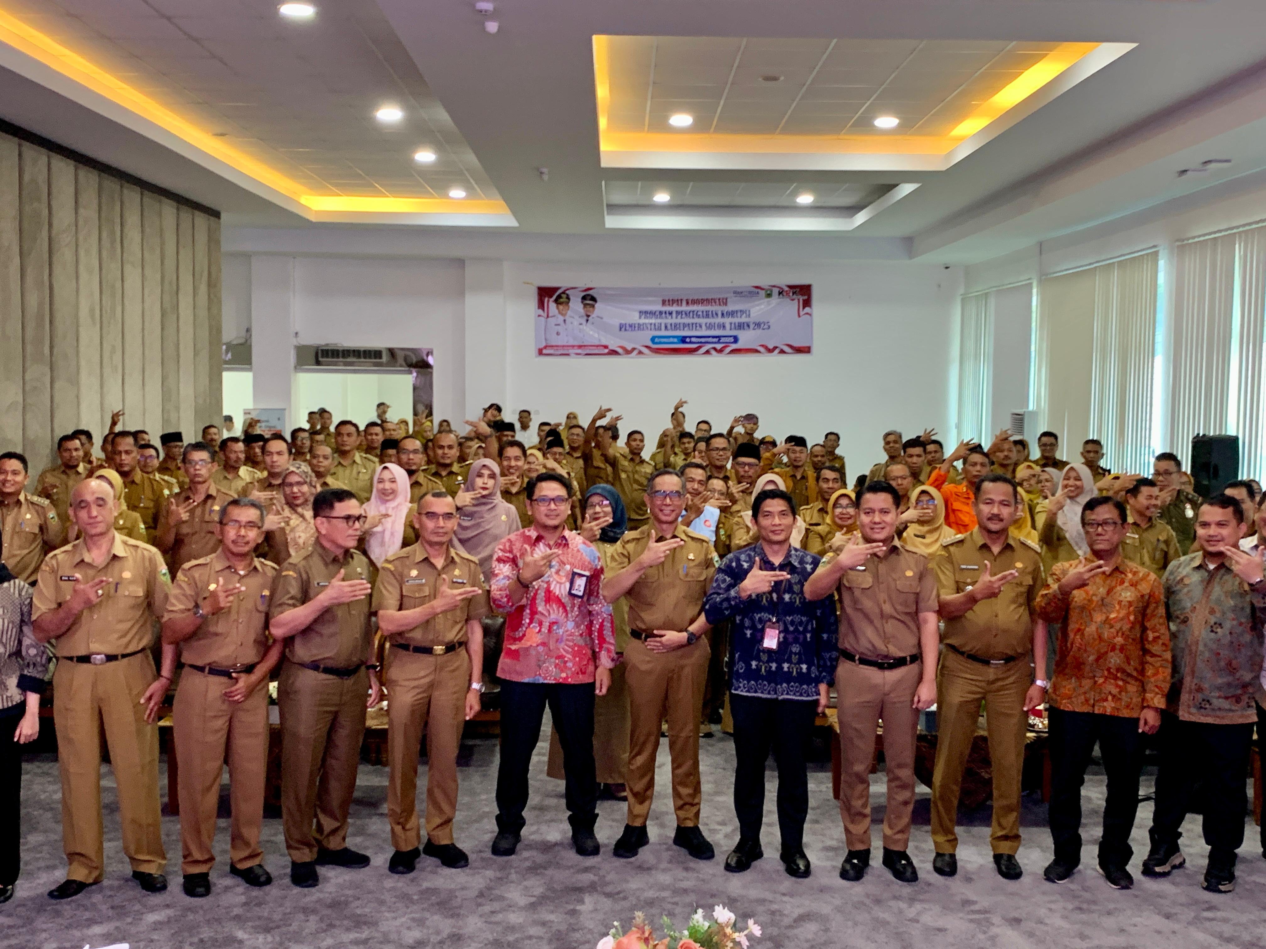 Kegiatan ini dihadiri oleh Tim Satgas Korsupgah KPK Wilayah I yang diketuai oleh Kasatgas Korsup Wilayah I Harun Hidayat beserta jajaran, Auditor Inspektorat Jenderal Kementerian Dalam Negeri yaitu Erric Fadhli, Noviandi Andilolo Lebang dan Hanifah Ainaini, kemudian dari Pemerintah Daerah Bupati Solok diwakili oleh Sekda Medison, Para staf ahli Bupati, Para Asisten, Kepala OPD, Direktur RSUD, Sekretaris dan Inspektur Pembantu Inspektorat, Auditor dan PPUPD Inspektorat, Camat serta Wali Nagari se-Kabupaten Solok.