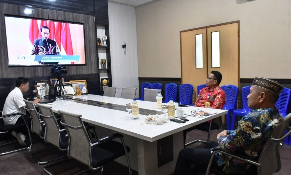 POHUWATO, CARAPANDANG.COM - Bupati Pohuwato, Saipul A. Mbuinga didampingi Inspektur Daerah, Muslimin Nento secara virtual mengikuti Rapat Koordinasi Nasional (Rakornas) Pengawasan Intern Pemerintah Tahun 2023 yang dibuka Presiden Joko Widodo di Gedung Badan Pengawasan Keuangan dan Pembangunan (BPKP), Jakarta, Rabu, (14/6/2023.