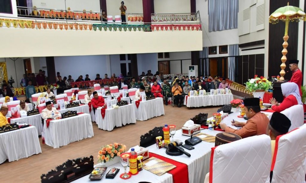 POHUWATO, CARAPANDANG.COM - Uji coba penerbangan Bandara Panua Pohuwato turut disampaikan Bupati Pohuwato, Saipul A. Mbuinga pada Rapat Paripurna Istimewa DPRD dalam rangka Hari Ulang Tahun (HUT) ke-21 Kabupaten Pohuwato di ruang sidang DPRD, Minggu, (25/02/2024).