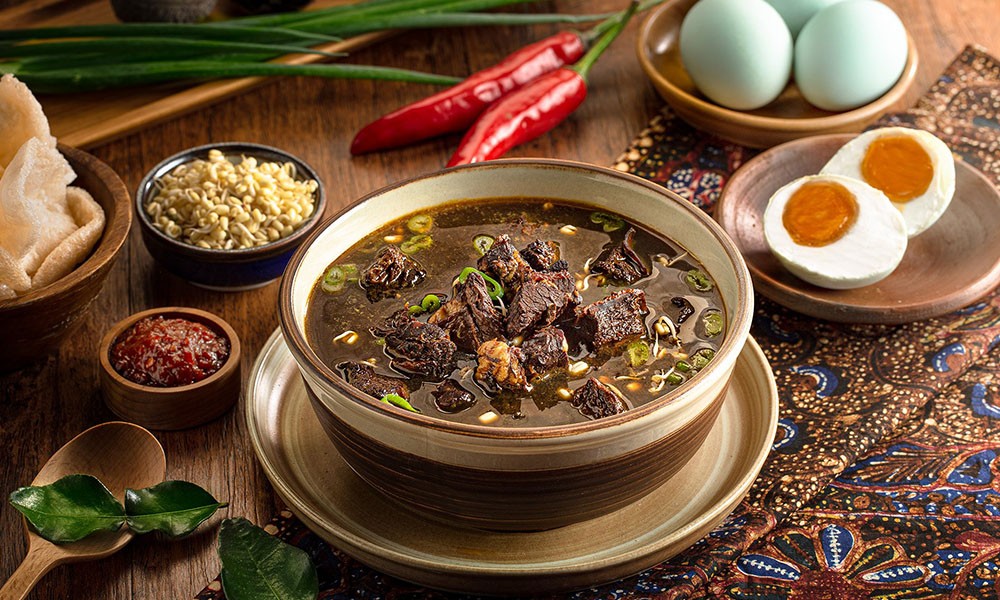 CARAPANDANG - Lezatnya sup berwarna hitam berisi potongan daging sapi, biasanya bagian sandung lamur, taoge kecil, kerupuk udang, telur asin, lengkap dengan nasi hangat dan sambal, siapa saja pasti memilih menunda dietnya. Diracik dari bumbu-bumbu khas Indonesia, antara lain campuran bawang putih dan bawang merah, ketumbar, serai, lombok lengkuas, garam, serta keluak, membuat sup hitam ini memiliki rasa yang khas. Keluak atau kepayang atau pucung, memiliki nama Latin Pangium edule merupakan bumbu dapur masakan Indonesia yang menghasilkan warna kehitaman pada masakan. Biasa dipakai untuk sup konro, brongkos, serta rawon. Tidak hanya disukai oleh masyarakat Indonesia, kelezatan sajian rawon ternyata juga disukai masyarakat mancanegara dan dikenal dengan sebutan black soup.