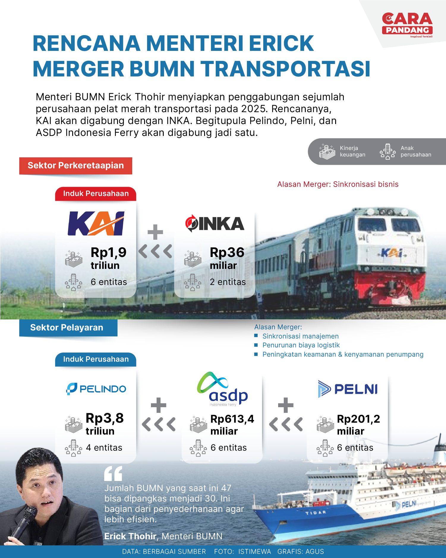 CARAPANDANG - Rencana Menteri Erick Merger BUMN Transportasi