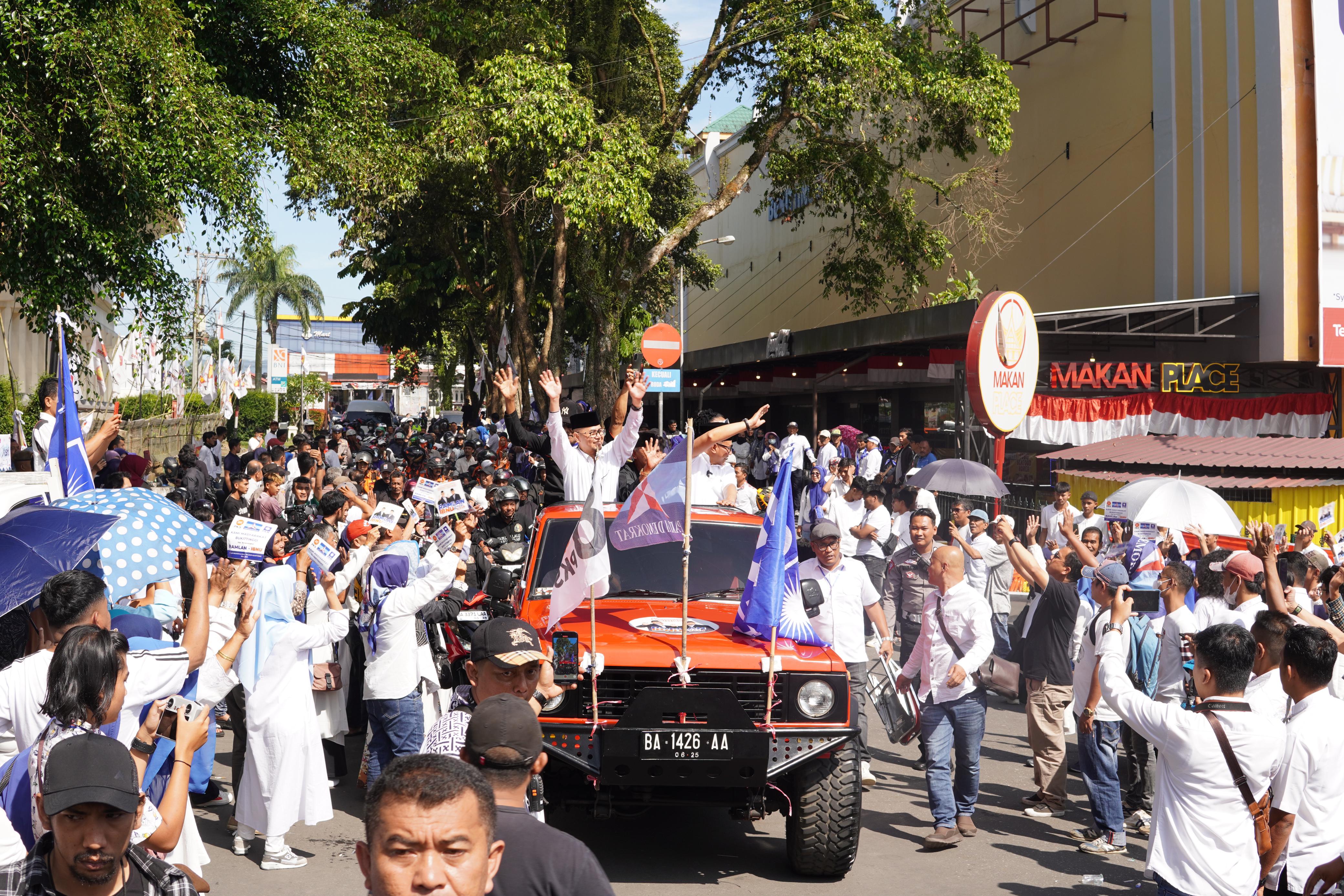 Massa umumnya memakai kostum warna putih. Di samping itu, banyak juga yang membawa atribut partai.Pasangan calon walikota dan wakil walikota Bukittinggi Ramlan Ibnu ini diusung oleh Partai Keadilan Sejahtera, Partai Demokrat dan Partai Amanat Nasional, resmi maju dalam Pemilihan Kepala Daerah (Pilkada) Bukittinggi periode 2025-2030.