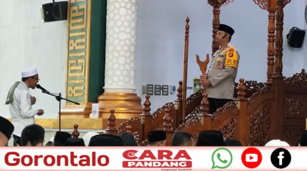 POHUWATO, CARAPANDANG - Kapolres Pohuwato, AKBP H. Busroni, S.I.K, M.H, mendapat kehormatan menjadi khatib Salat Jum'at, di Masjid Agung Baiturrahim, Kecamatan Marisa, Kabupaten Pohuwato, Jum'at (28/03/2025).