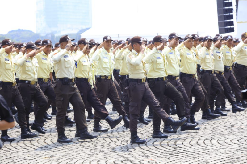 CARAPANDANG - Satuan pengamanan (satpam), organisasi kemasyarakatan (ormas), dan unsur potensi masyarakat (potmas) akan ikut upacara dan defile Hari Ulang Tahun (HUT) ke-79 Bhayangkara di kawasan Monumen Nasional (Monas), Jakarta Pusat , Selasa (1/7).