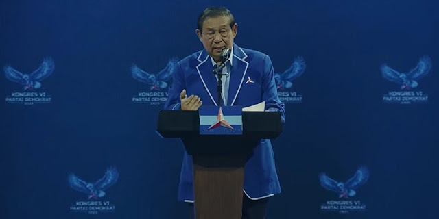Demikian pesan disampaikan Ketua Majelis Tinggi Partai Demokrat dan Presiden RI ke-6, Susilo Bambang Yudhoyono (SBY) saat menyampaikan pidato politik di pembukaan Kongres ke-VI partai Demokrat di Ritz-Carlton, Pasific Place, SCBD, Jakarta Selatan, Senin 24 Februari 2024.