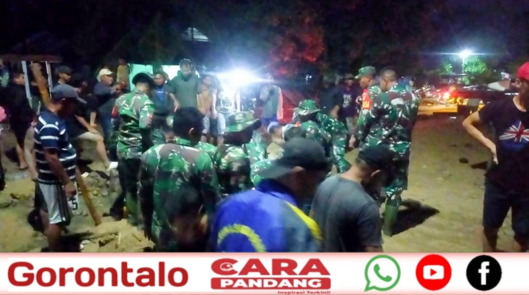 Dandim 1313/Pohuwato, Letkol Inf Madiyan Surya, bersama personel Kodim, Babinsa Koramil 1313-01/Paguat, Babinkantibmas, dan aparat desa bergerak cepat membantu evakuasi warga terdampak.