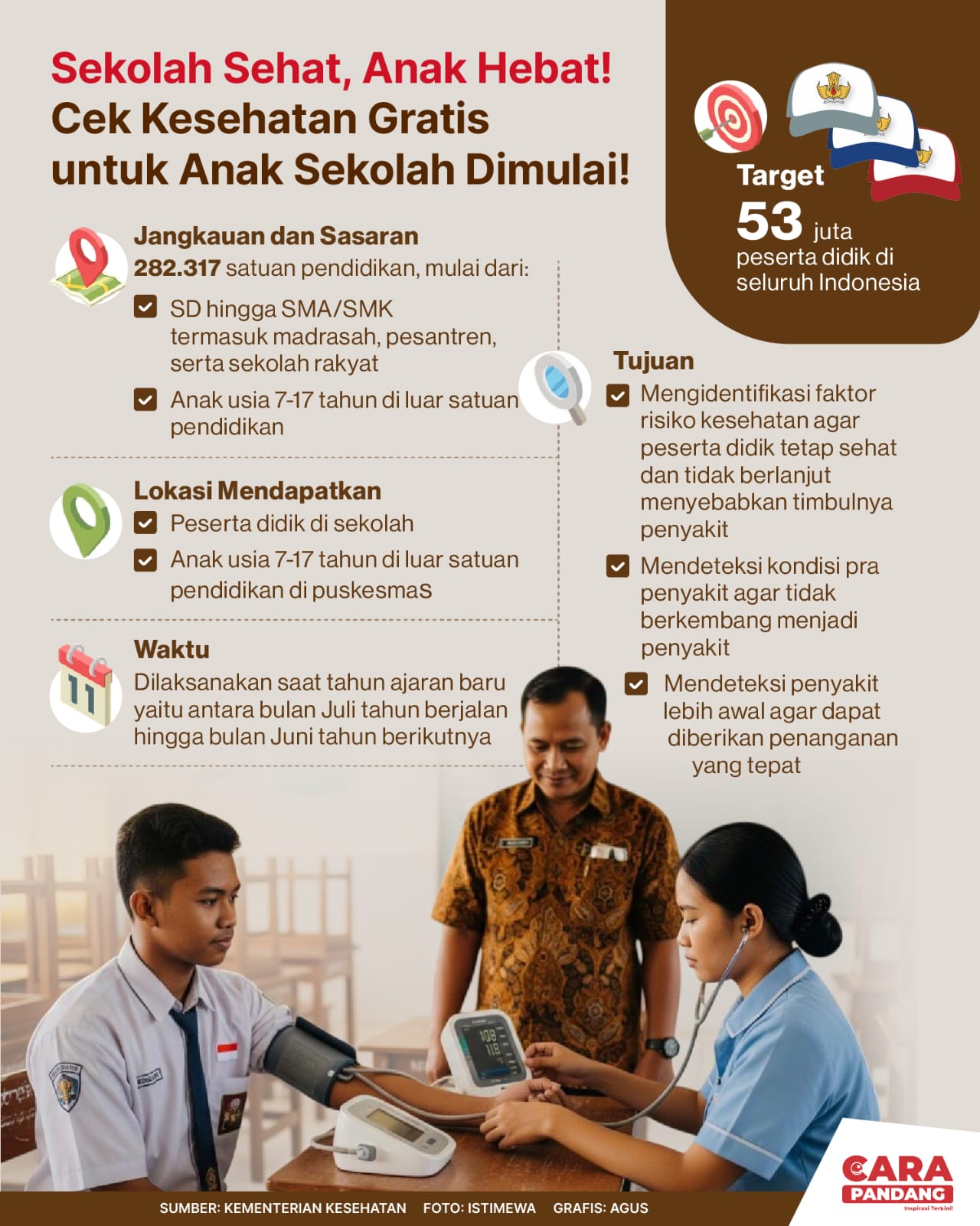 Beranda Infografis Sekolah Sehat, Anak Hebat! Infografis Sekolah Sehat, Anak Hebat! Sekolah Sehat, Anak Hebat! Penulis Edo Soeryadi - 06 Agustus 2025 06:30 0 CARAPANDANG.COM - Sekolah Sehat, Anak Hebat! Tags Infografik Berita Sebelumnya Israel Setujui Masuknya Barang Secara Terbatas ke Gaza di Tengah Krisis Kelaparan Berita Berikutnya Indonesia Dalam Dilema Misi Perdamaian Dunia LEAVE A REPLY Cancel reply Comment: Please enter your comment! Name:* Please enter your name here Email:* You have entered an incorrect email address! Please enter your email address here Website: Save my name, email, and website in this browser for the next time I comment. Berita Teratas Kisah Ajaib Nabi Sulaiman dan Anak yang Berbakti kepada Orang Tua 8 Cara Merawat Kucing Kesayangan Agar Tubuhnya Selalu Sehat Minuman yang Mampu Redakan Batuk yang Menganggu Manfaat Ajaib Bawang Putih Bagi Kesehatan 8 Cara Menjaga Kesehatan Gigi dan Mulut yang Efektif Berita Terkait Berita Terkait Wajah Baru PP Tunas: Garda Terdepan Perlindungan Anak Indonesia Zoel Rachman - 31 Maret 2026 09:42 MBG 5 Hari Sepekan Masih Wacana Maliq - 30 Maret 2026 11:49 Presiden Ingin Semua Kendaraan Dikonversi ke Listrik Maliq - 30 Maret 2026 11:48 Kewaijiban PSE Terhadap Pengguna Anak Maliq - 30 Maret 2026 11:15
