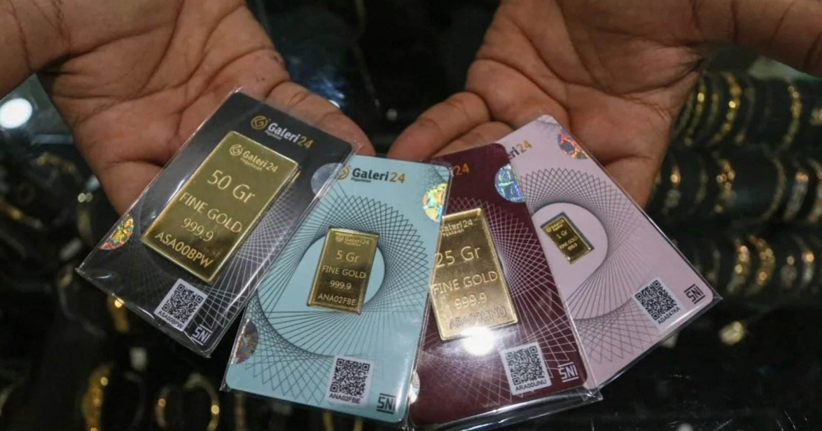 Emas Galeri24 dijual dengan kuantitas 0,5 gram hingga 1.000 gram atau 1 kilogram. Sementara emas UBS dijual dengan kuantitas 0,5 gram hingga 500 gram.Berikut daftar lengkap harga emas masing-masing produk: