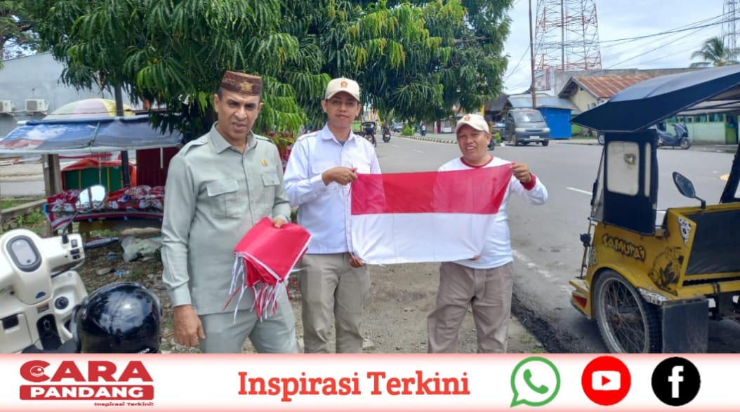 Tidak hanya membeli, Pengurus Gerindra juga turut membagikannya kepada pelaku usaha yang tidak terpasang bendera di depan tempat usahanya, Selasa (12/08/2025).