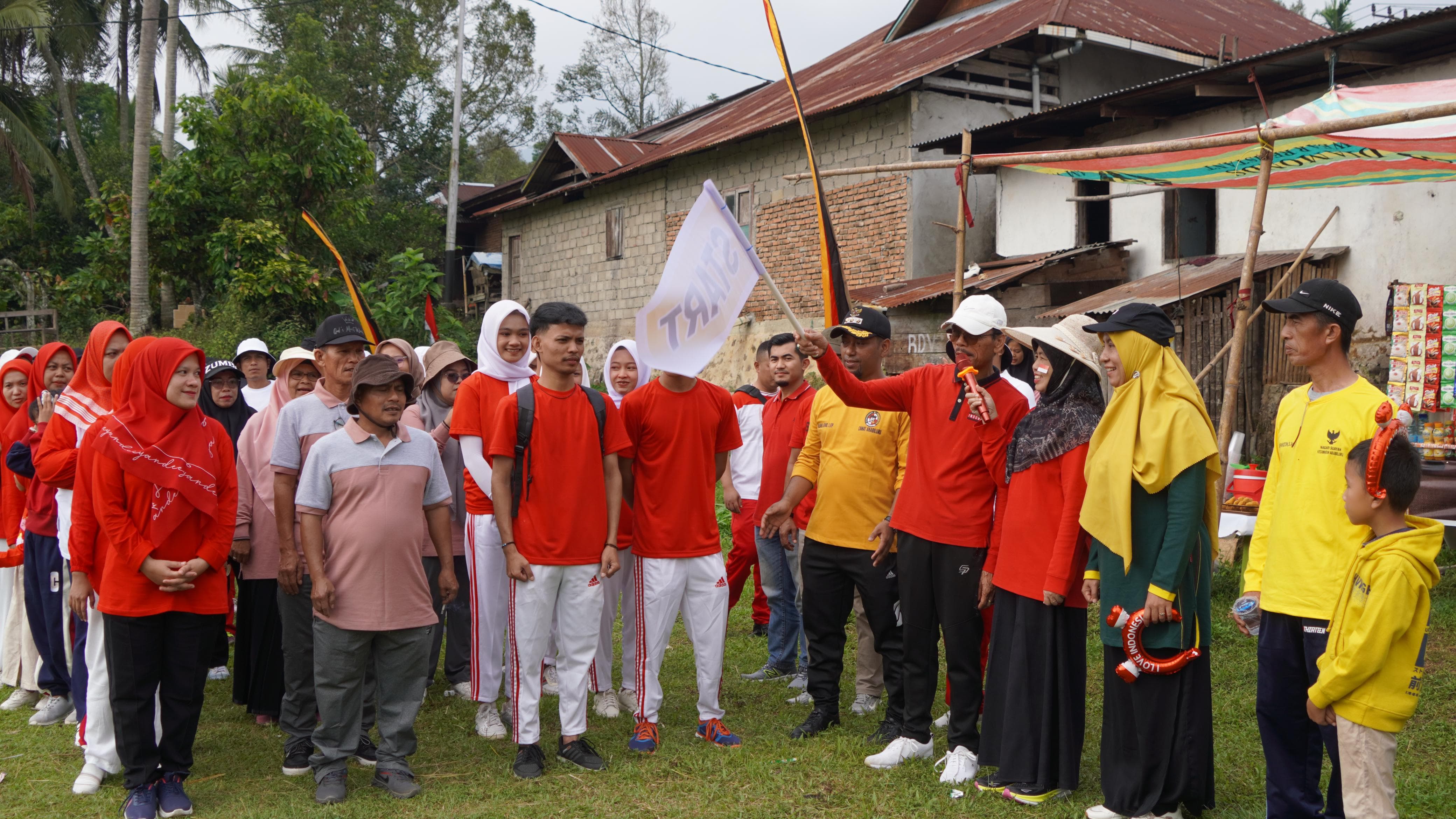 Gelora peringatan kemerdekaan Indonesia begitu terasa di Akabiluru saat Bupati Lima Puluh Kota Safaruddin Dt. Bandaro Rajo membuka sekaligus melepas secara resmi para peserta di Lapangan Bola Kaki Suayan.