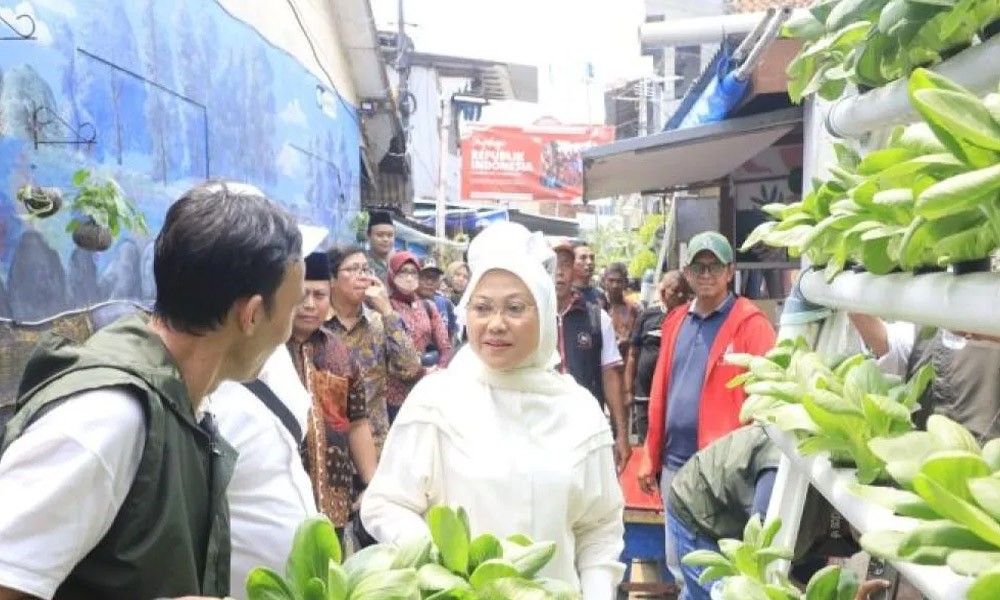 CARAPANDANG - Menteri Ketenagakerjaan (Menaker), Ida Fauziyah meninjau sentra Pelatihan Berbasis Kompetensi (PBK), serta melakukan panen hasil tanaman hidroponik warga di Kelurahan Tanah Tinggi, Johar Baru, Jakarta Pusat.