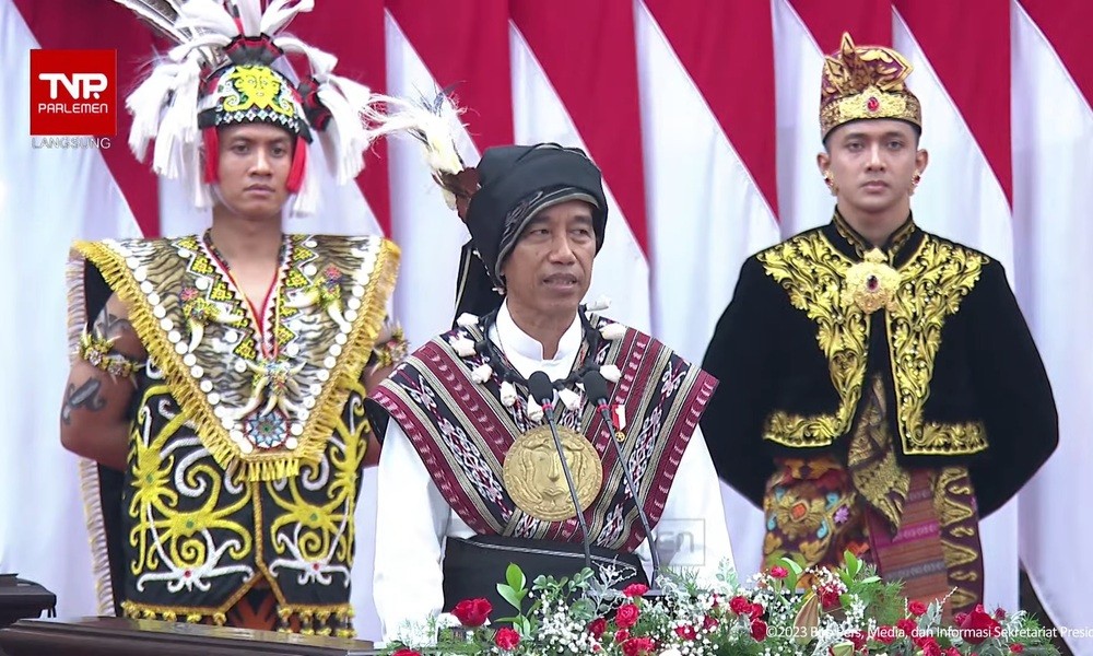 CARAPANDANG - Presiden Joko Widodo (Jokowi) berkelakar saat membacakan pidato Presiden RI tentang Laporan Kinerja Lembaga-Lembaga Negara dan Pidato Kenegaraan Presiden RI dalam rangka HUT Ke-78 Kemerdekaan RI.