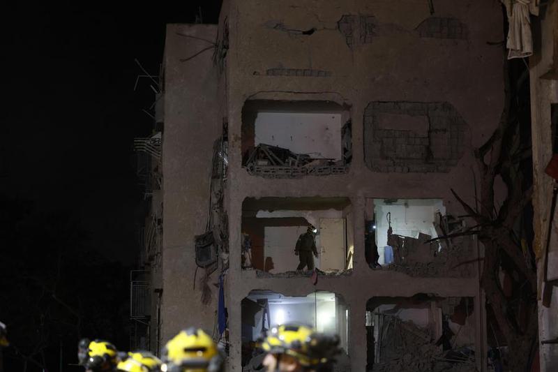 Seorang petugas tanggap darurat bekerja di sebuah lokasi yang terkena serangan rudal Iran di Arad, Israel selatan, pada 22 Maret 2026. (Carapandang/Xinhua/Jamal Awad)