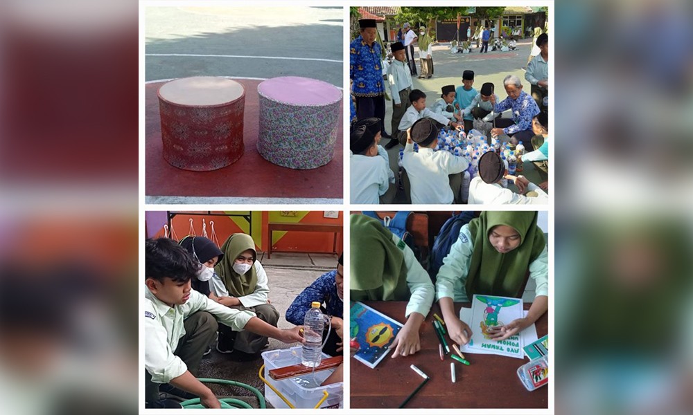 MTs N 6 Bantul dalam rangka memperingati hari ozon sedunia, Sabtu (17/9/22) mengadakan berbagai macam kegiatan diantaranya adalah sedekah botol air mineral yang telah diisi plastik bekas/limbah yang kering, pemanfaatan botol air mineral menjadi bunga, kursi dan pembuatan pompa hidrolik, serta lomba pembuatan poster/karikatur dengan tema “Penyelamatan Bumi”.