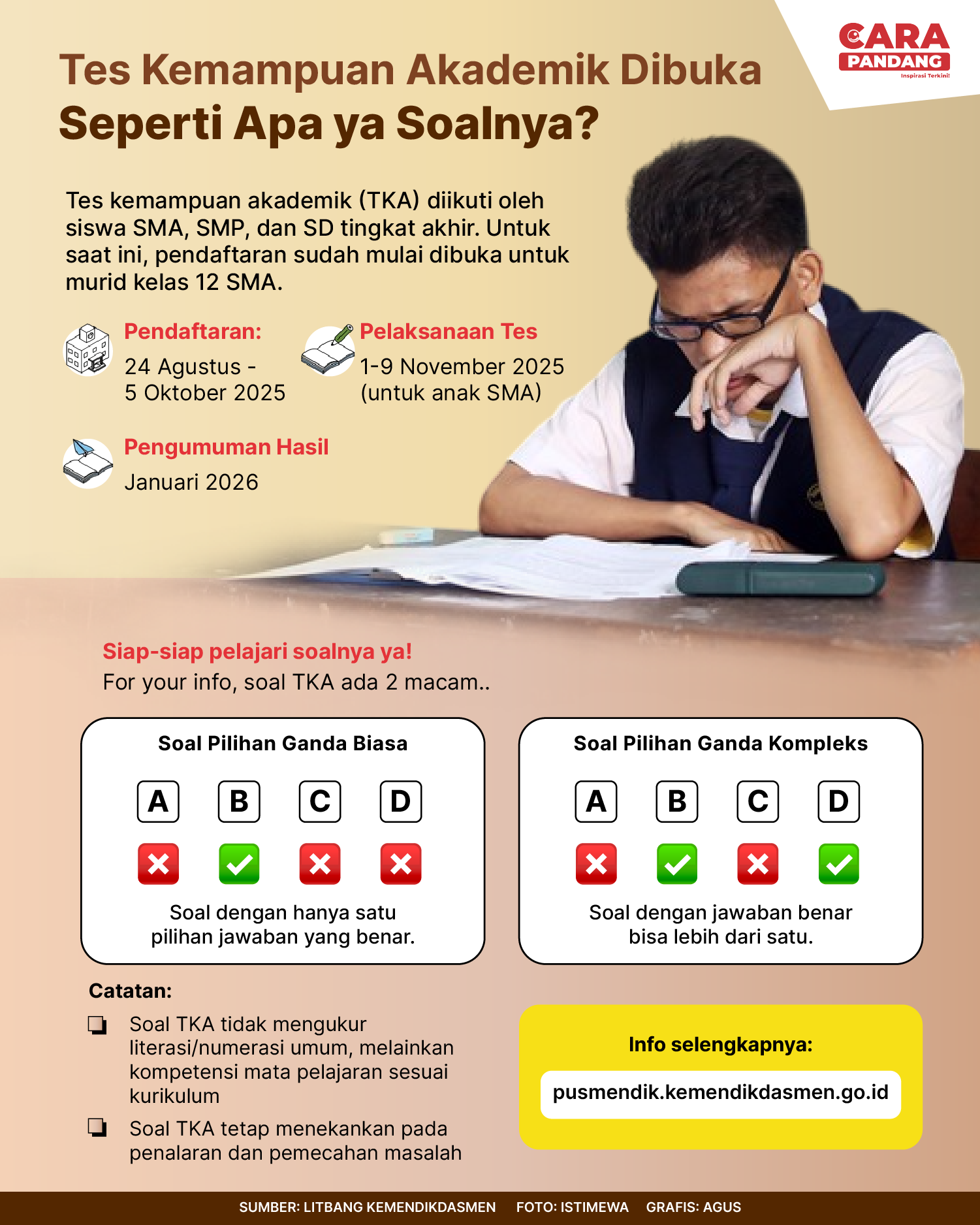 Beranda Infografis Soal Tes Kemampuan Akademik Infografis Soal Tes Kemampuan Akademik Penulis Amira Izzati - 05 September 2025 22:38 0 Soal Tes Kemampuan Akademik Tags Berita Sebelumnya Menlu Inggris Siap Ajak Mitra Teluk Capai Konsensus Perdamaian Gaza Berita Berikutnya Indonesia Dalam Dilema Misi Perdamaian Dunia LEAVE A REPLY Cancel reply Comment: Please enter your comment! Name:* Please enter your name here Email:* You have entered an incorrect email address! Please enter your email address here Website: Save my name, email, and website in this browser for the next time I comment. Berita Teratas Kisah Ajaib Nabi Sulaiman dan Anak yang Berbakti kepada Orang Tua 8 Cara Merawat Kucing Kesayangan Agar Tubuhnya Selalu Sehat Minuman yang Mampu Redakan Batuk yang Menganggu Manfaat Ajaib Bawang Putih Bagi Kesehatan 8 Cara Menjaga Kesehatan Gigi dan Mulut yang Efektif Berita Terkait Berita Terkait Wajah Baru PP Tunas: Garda Terdepan Perlindungan Anak Indonesia Zoel Rachman - 31 Maret 2026 09:42 MBG 5 Hari Sepekan Masih Wacana Maliq - 30 Maret 2026 11:49 Presiden Ingin Semua Kendaraan Dikonversi ke Listrik Maliq - 30 Maret 2026 11:48 Kewaijiban PSE Terhadap Pengguna Anak Maliq - 30 Maret 2026 11:15
