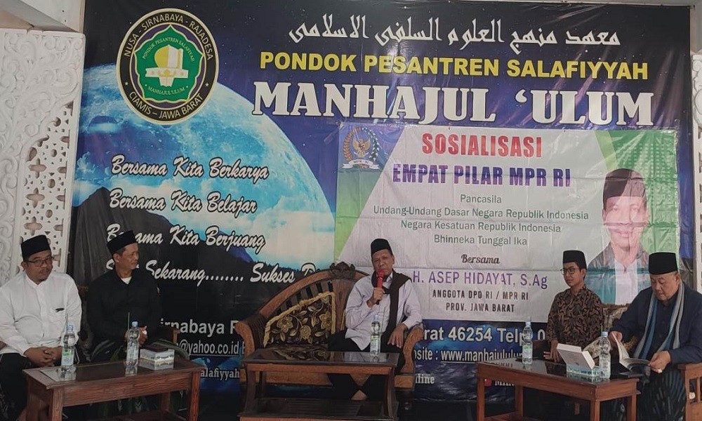 CARAPANDANG - Anggota Dewan Perwakilan Daerah (DPD) RI, H. Asep Hidayat, S.Ag menggelar kegiatan Sosialisasi Empat Pilar MPR RI di Pondok Pesantren Salafiyah Manhajul ‘Ulum, Kabupaten Ciamis pada Rabu 5 Juni 2024.