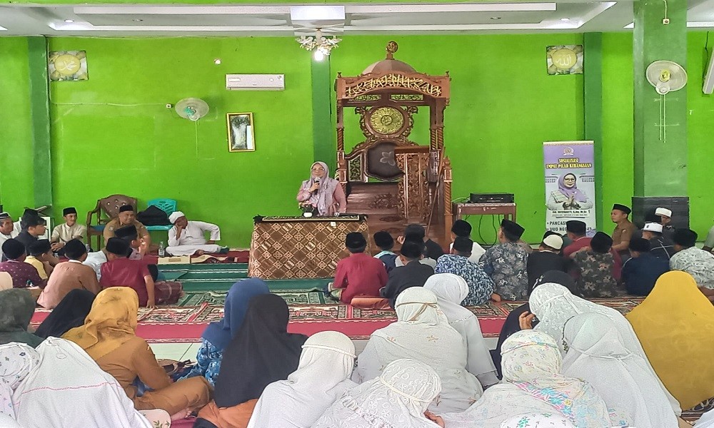 Anggota MPR RI, Dr. Hj. Misharti saat menjadi pembicara pada Sosialisasi Empat Pilar MPR  yang digelar di Pondok Pesantren Al-Karomah ‘Aidarusy di Kecamatan Koto Kampar Hulu, Kabupaten Kampar, Riau  pada Selasa 18 Juli 2023.