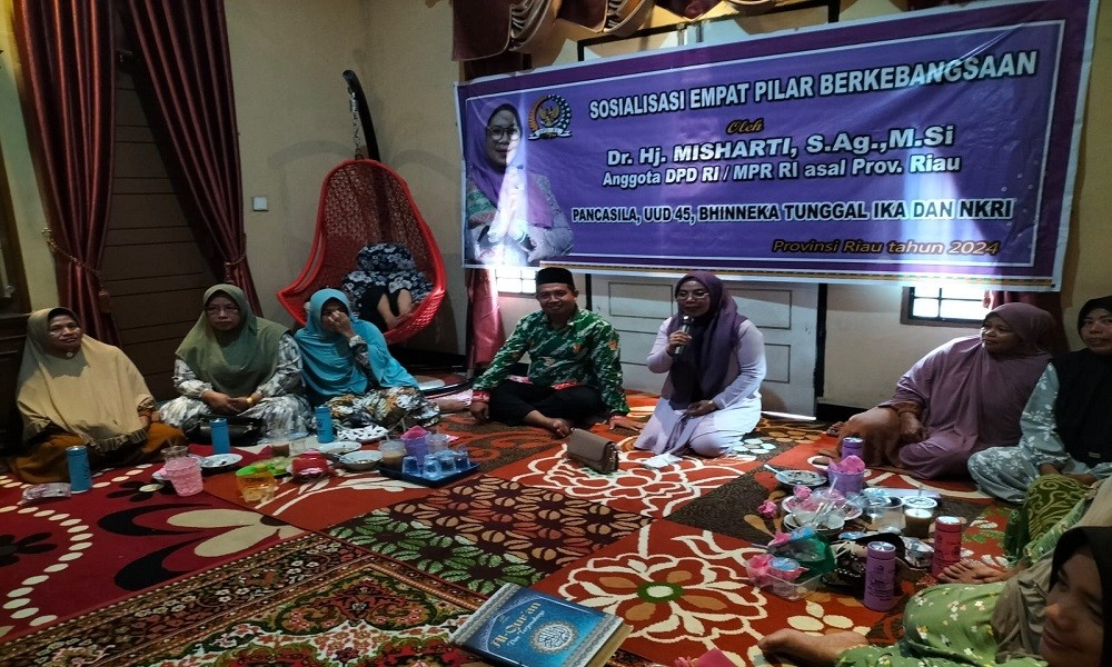 CARAPANDANG - Anggota MPR RI, Dr. Hj. Misharti menggelar kegiatan Sosialisasi Empat Pilar MPR di Dusun Koto Simpang, Desa Koto Baru, Kecematan Singingi Hilir, Kab. Kuantan Singingi, Provinsi Riau pada Minggu, 21 Januari 2024.
