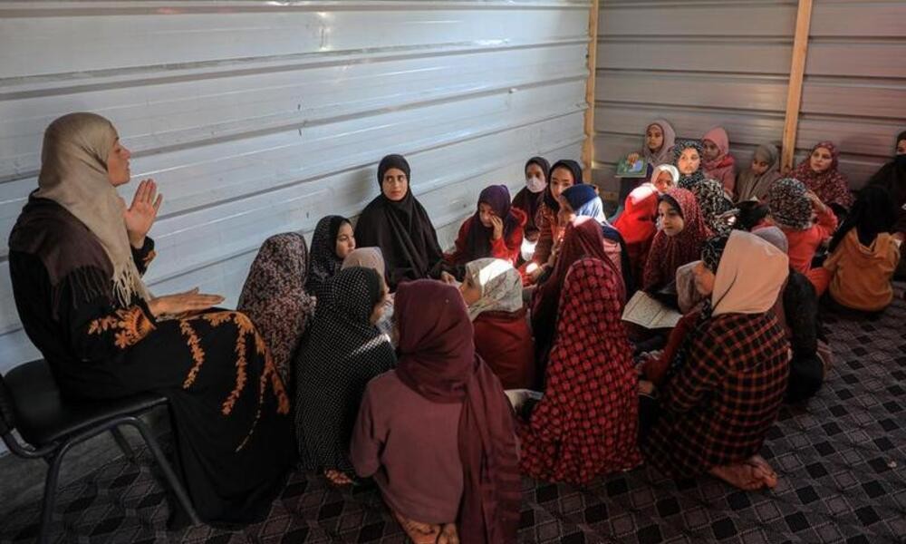 CARAPANDANG - Setelah serangan Israel memaksa banyak anak-anak di Jalur Gaza meninggalkan rumah dan sekolah mereka, Intisar al-Arabid, seorang guru asal Palestina yang tinggal di Gaza, meluncurkan inisiatifnya untuk mengajar para murid pengungsi di tempat penampungannya yang terletak di sebelah selatan Kota Rafah.