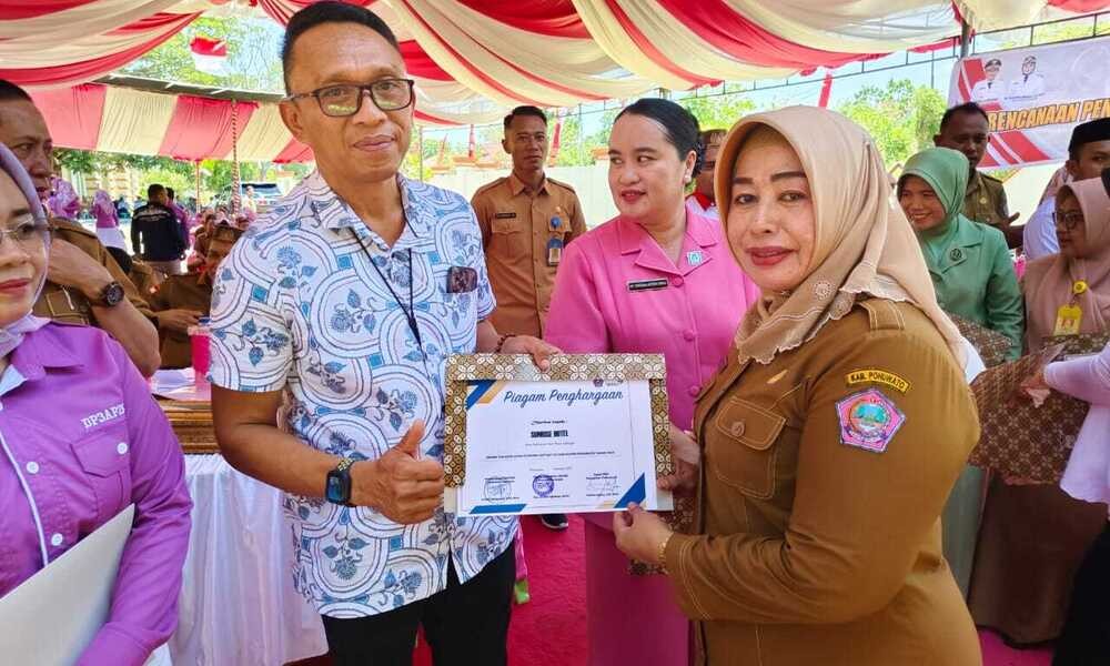 Penghargaan itu diserahkan Wakil Bupati Pohuwato Suharsi Igirisa kepada Direktur Sunrise Hotel's and Homestay, Fachrudin Zakaria, sesaat usai peluncuran program 56 Kampung Keluarga Berkualitas (KB), Dapur Sehat Atasi Stunting (DASHAT), dan Desa Ramah Perempuan dan Peduli Anak (DRPPA), di kantor DP3AP2KB Kabupaten Pohuwato, Senin (16/10/2023).