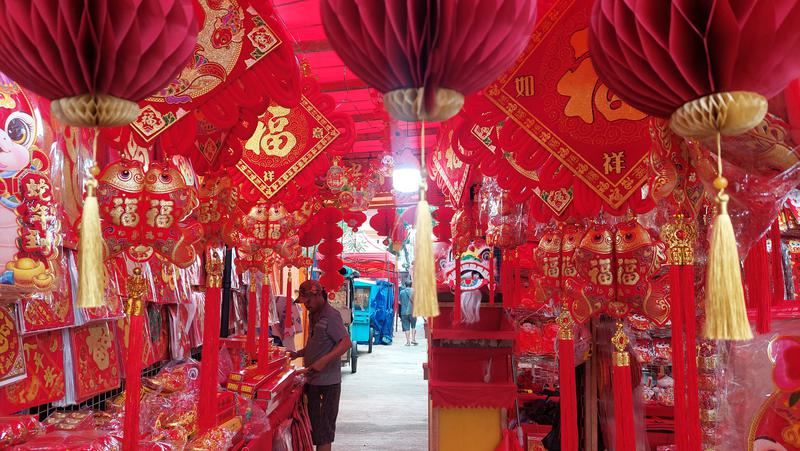 Meski perayaannya masih sekitar satu pekan lagi, kawasan Pecinan Glodok di Jakarta, sudah makin ramai. Sejumlah tenda pedagang pernak-pernik Imlek mulai menghiasi bahu jalan, menawarkan berbagai kebutuhan, mulai dari angpao, lampion, tempelan dinding, hiasan bunga meihua, hingga pakaian.